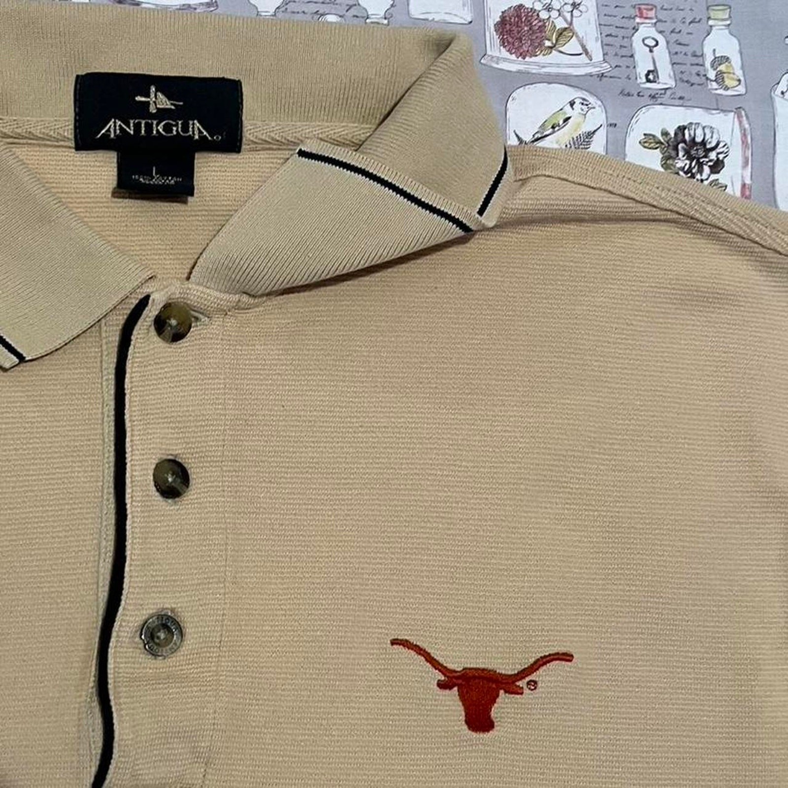 Antigua Longhorns Polo - Pale yellow with longhorn embroidered on the front Condition: Brand and size: Antigua Large If measurements are not in pictures message for them to be added! All prices are negotiable