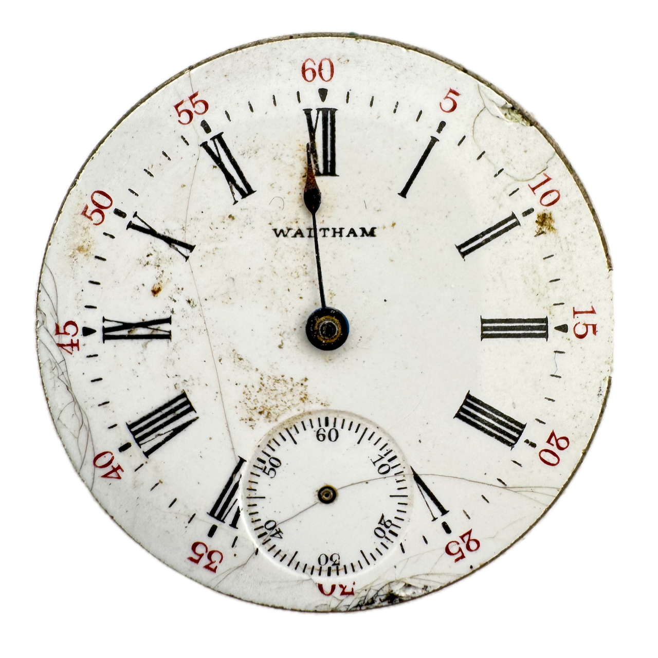 Antique 0s 1901 Waltham 7 Jewel Mechanical Hunter Pocket Watch Movement Seaside Product Description Item: Pocket Watch Movement Brand: Waltham Movement: Mechanical Production Year: 1901 Country: USA Jewels: 7 Jewel Gender: Men's Grade: Seaside Size: 0s Product Measurements Diameter: 29mm Product Condition Overall Condition: Fair, overall condition for its age. Functions: Not running but the balance complete is in good condition. Dial: The dial is in rough condition. Hands: It is missing minute and second hand. There is discoloration on the hands.