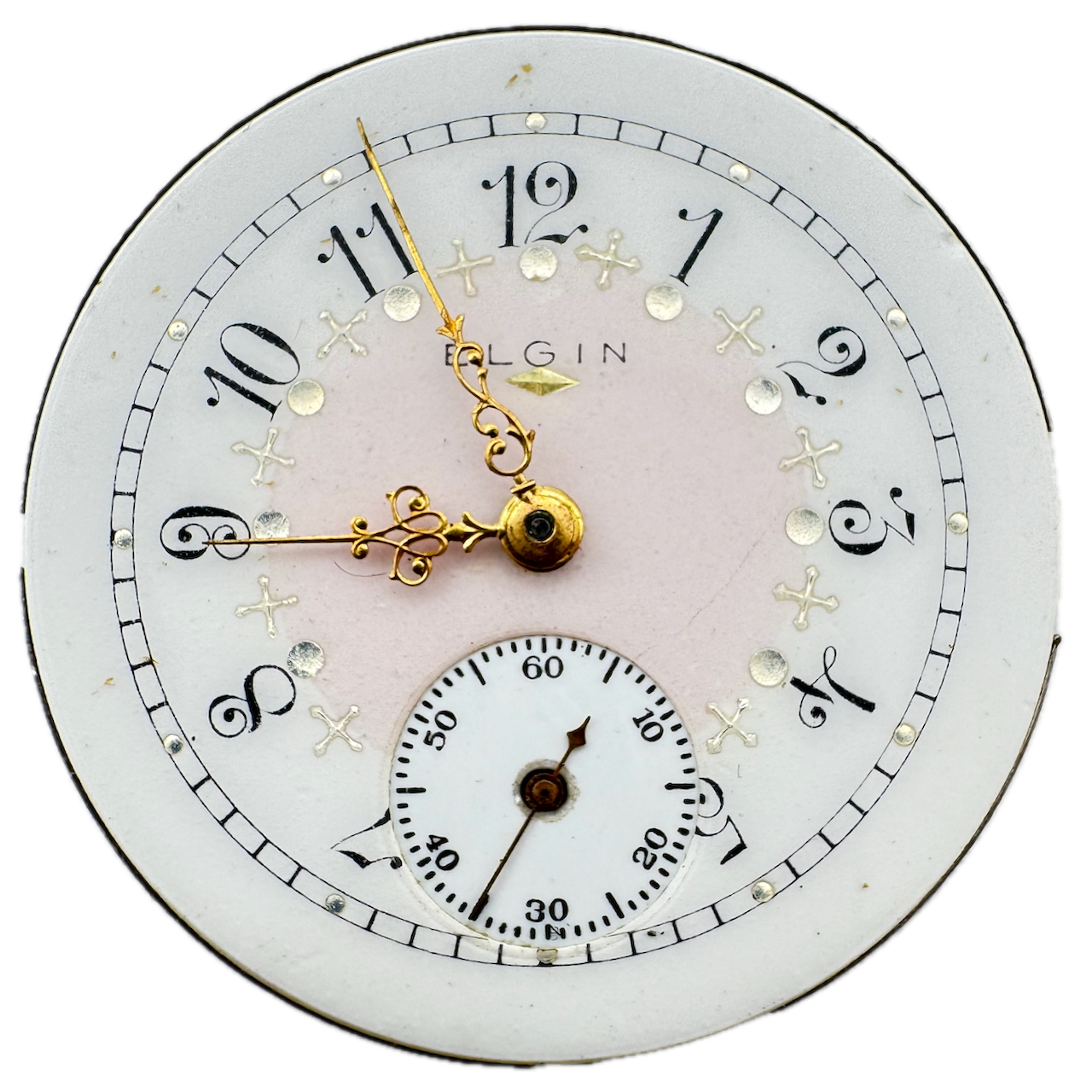 Antique 0s 1910 Elgin Multicolor 7 Jewel Hunter Pocket Watch Movement 320 USA Product Description Item: Pocket Watch Movement Brand: Elgin Model: Multicolor Movement: Mechanical Production Year: 1910 Country: USA Jewels: 7 Jewel Gender: Men's Grade: 320 Size: 0s Product Measurements Diameter: 29.5mm Product Condition Overall Condition: Fair, overall condition for its age. Functions: Running, but may be in need of service. This means, it can run unreliably, start or stop and timekeeping is not guaranteed. Dial: The dial is in good condition.