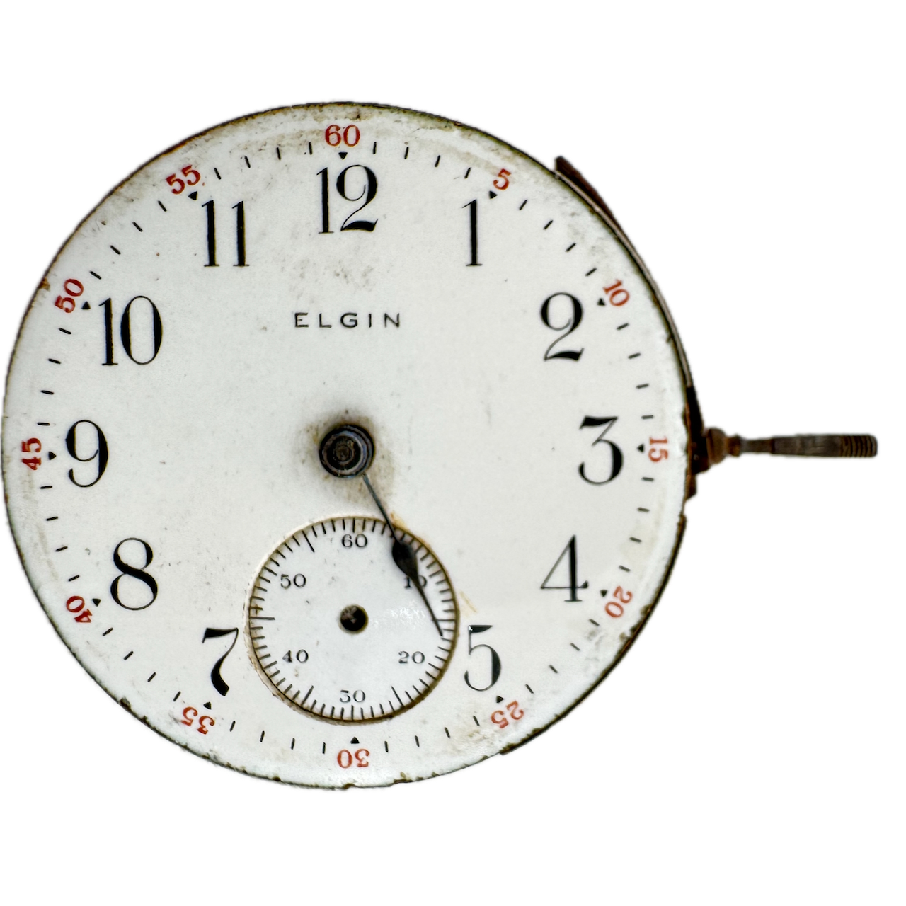 Antique 0s 1912 Elgin 7 Jewel Mechanical Hunter Pocket Watch Movement 320 USA Product Description Item: Pocket Watch Movement Brand: Elgin Movement: Mechanical Production Year: 1912 Country: USA Jewels: 7 Jewel Gender: Men's Grade: 320 Size: 0s Product Measurements Diameter: 29.5mm Product Condition Overall Condition: Poor, overall condition for its age. Functions: Not running but the balance complete is in good condition. Dial: The dial has hairline crack(s) on it. Hands: It is missing minute and second hand. There is discoloration on the hands.