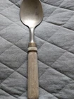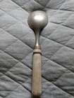Antique 10-1/2" Wooden Handled Pewter Serving Spoon. Condition is Used. Shipped with USPS Ground Advantage. I make a postal run Saturday mornings only.
