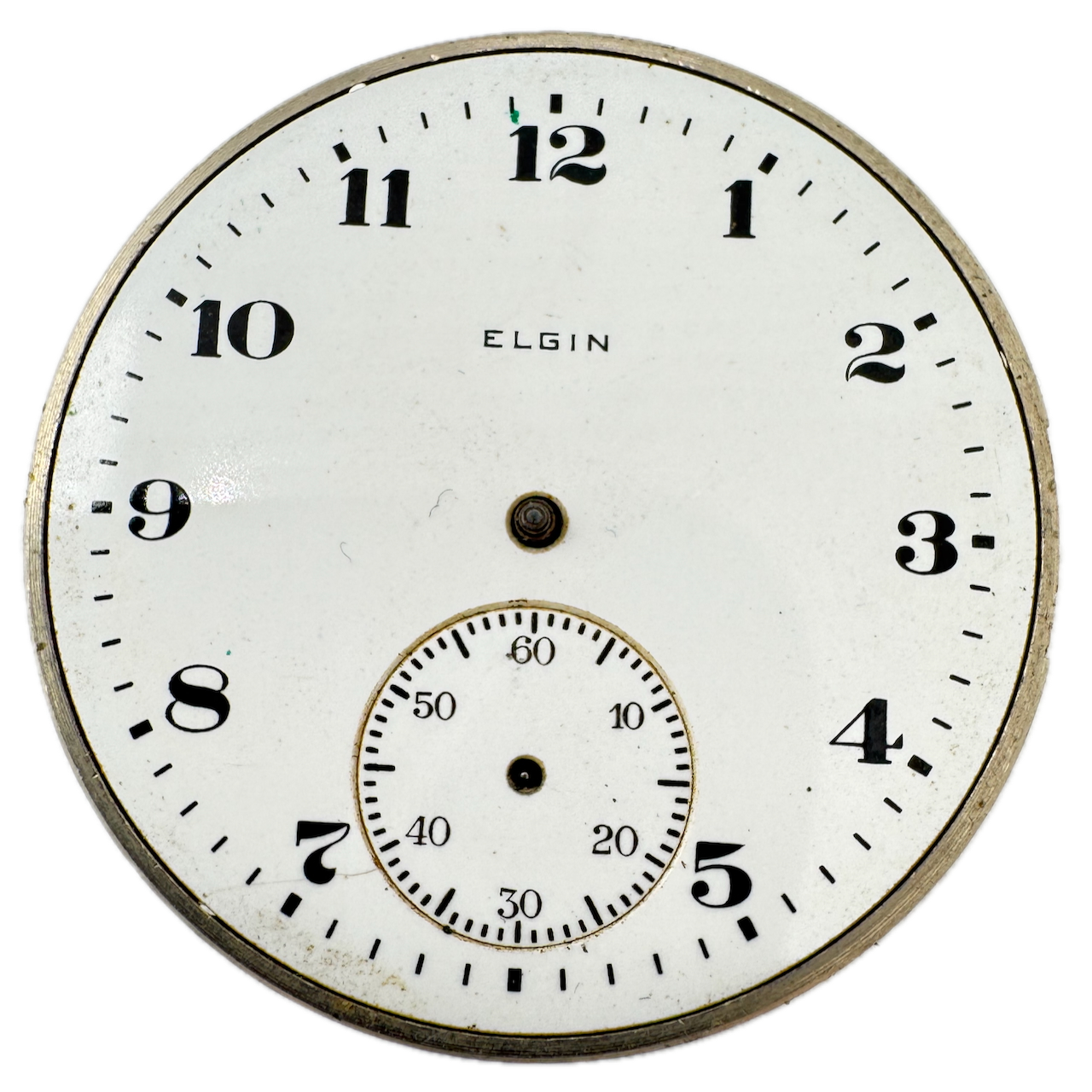 Antique 12s 1919 Elgin 7 Jewel Mechanical Hunter Pocket Watch Movement 301 USA Product Description Item: Pocket Watch Movement Brand: Elgin Movement: Mechanical Production Year: 1919 Country: USA Jewels: 7 Jewel Gender: Men's Grade: 301 Size: 12s Product Measurements Diameter: 39.5mm Product Condition Overall Condition: Fair, overall condition for its age. Functions: Not running but the balance complete is in good condition. Dial: The dial is in good condition. Hands: It is missing all the hands.