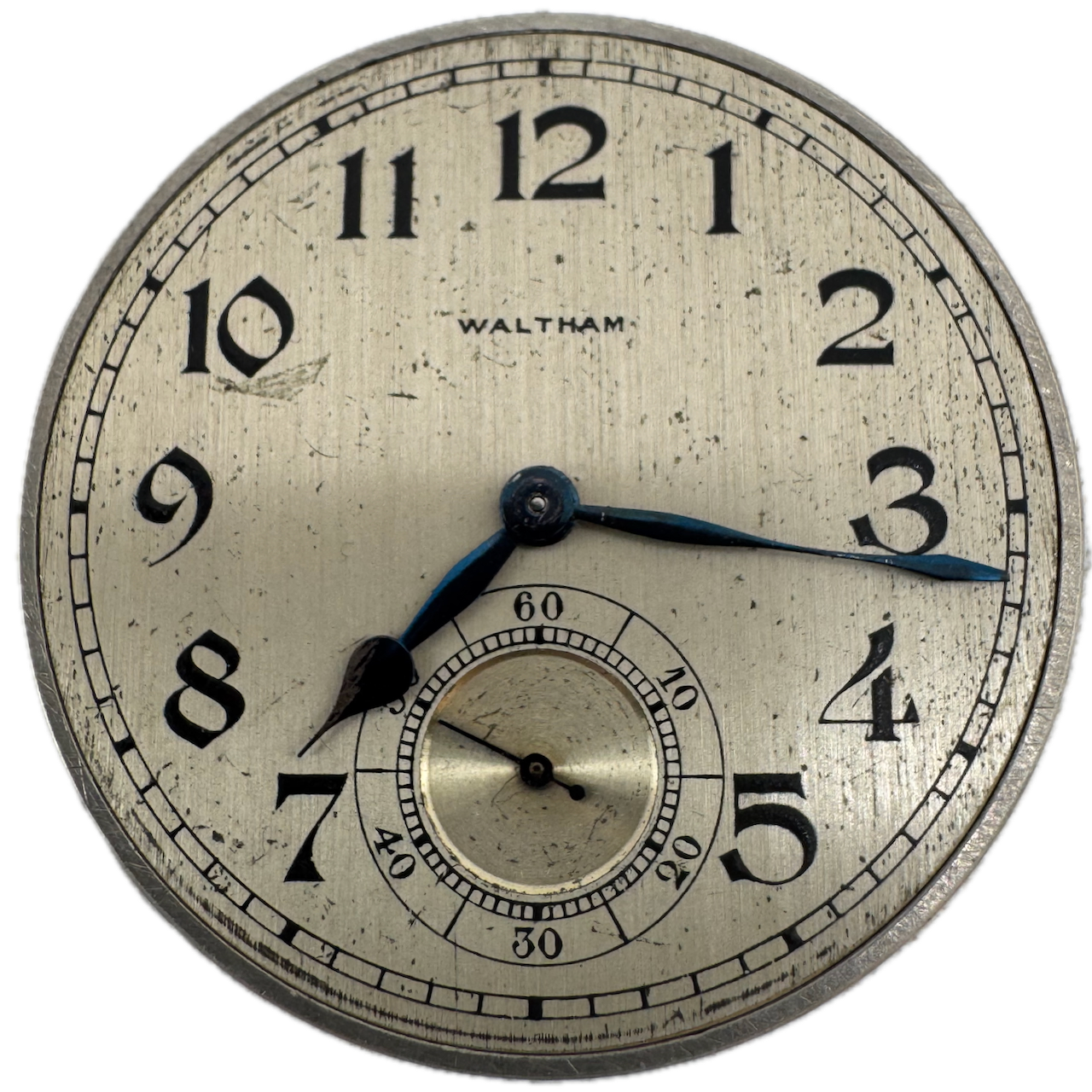 Antique 12s 1925 Waltham 7 Jewel Mechanical Pocket Watch Movement 220 USA Product Description Item: Pocket Watch Movement Brand: Waltham Movement: Mechanical Production Year: 1925 Country: USA Jewels: 7 Jewel Gender: Men's Grade: 220 Size: 12s Product Measurements Diameter: 39.5mm Product Condition Overall Condition: Fair, overall condition for its age. Functions: Not running but the balance complete is in good condition. Dial: The dial has scratches on it. Hands: There is discoloration on the hands.