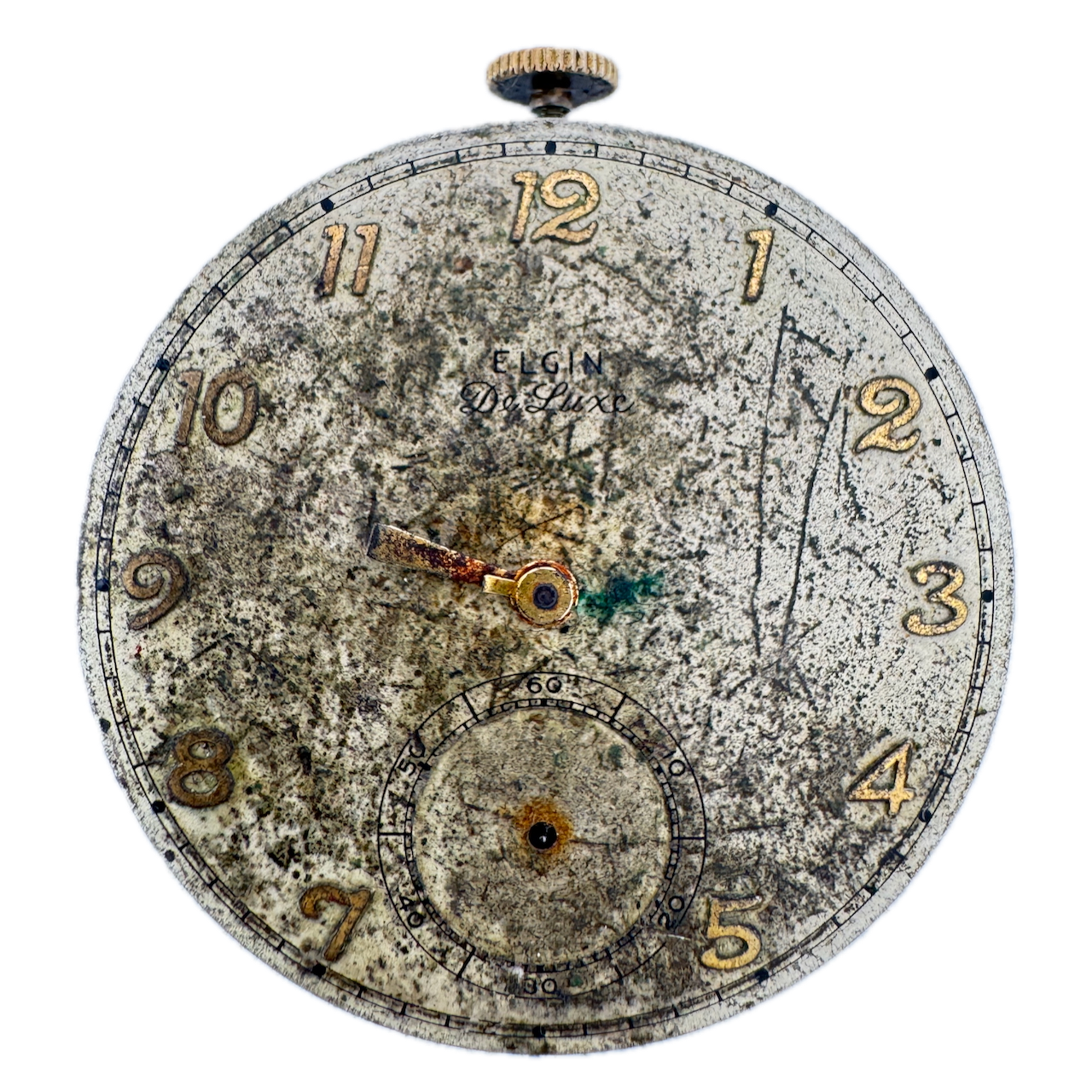 Antique 12s 1946 Elgin 17 Jewel Mechanical Pocket Watch Movement 542 USA Product Description Item: Pocket Watch Movement Brand: Elgin Movement: Mechanical Production Year: 1946 Country: USA Jewels: 17 Jewel Gender: Men's Grade: 542 Size: 12s Product Measurements Diameter: 39mm Product Condition Overall Condition: Poor, overall condition for its age. Functions: Not running, the Balance staff is broken. Dial: The dial is in rough condition. Hands: It is missing the second hand. All the hands are broken.