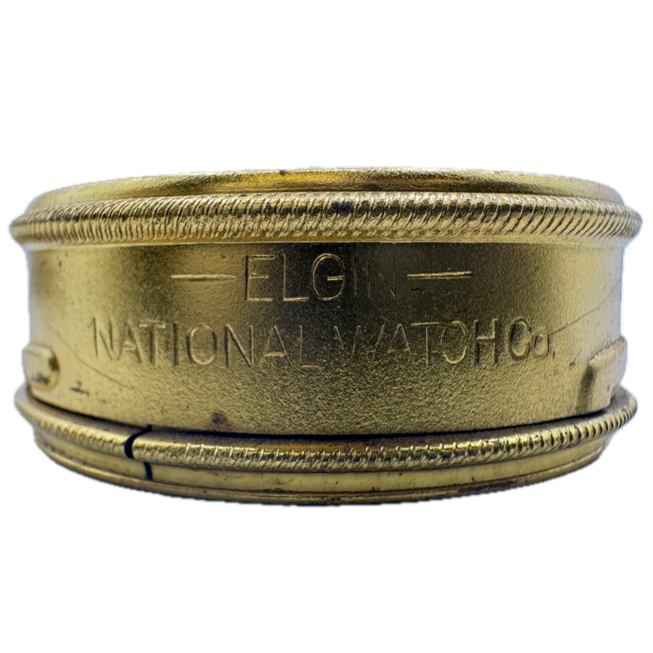 Antique 12s Elgin Coin Edge Open Face Pocket Watch Transport Case w Box USA Product Description Item: Pocket Watch Transport Case Brand: Elgin Model: Coin Edge Country: USA Gender: Unisex Product Measurements Inside Diameter: 39mm Outside Diameter: 51mm Product Condition Overall Condition: Fair, overall condition for its age. Case: There are scratches on the case. Crystal: There are scratches on the crystal. Additional Information: The tin is mismatched with the outer box.\