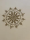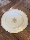 This antique 13” round platter is a beautiful piece of Limoges (maybe?) porcelain made in France. The cream color china with gold accents is stunning. The platter is marked with the initials "R S" and "Made In France", indicating its authenticity. The rim sits an inch and a half off the table for easy handling. There is a chip on the bottom, which is not noticeable.