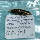 Antique 14K Yellow Gold Emerald Diamond Victorian Brooch 1.5 Inch Length 1.5 Inch Length Weighs 5.96g Stamped: Unreadable See all pictures for details and measurements excellent condition, minimal signs of wear may be present such as fine lines, scratches, dings visible using a jewelers loupe. Our Sterling Silver pieces have been acid tested to confirm purity and cleaned using a soft polishing cloth, or jewelers rouge, some patina be intentionally remaining All of my jewelry comes packaged nicely for gift giving! Please visit my page to see my extensive inventory of fine, handmade, vintage to now and antique jewelry, all carefully tested and inspected Features: • Victorian, Formal, Alluring Size: Womens 1.5 Inch Condition: New Without Tags Excellent Condition, and will come packaged nicely for gift giving! See written description and pictures for full condition information.