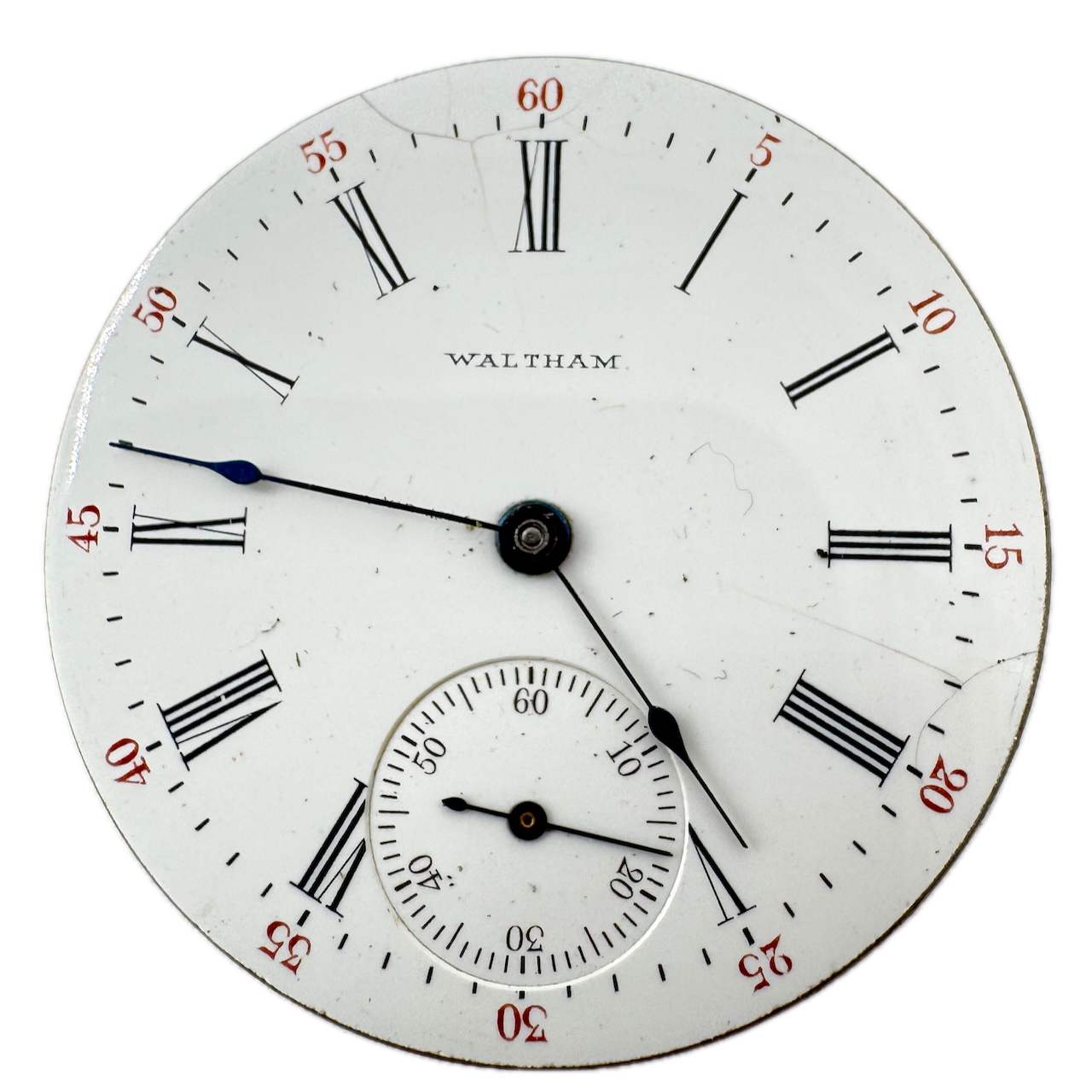 Antique 16s 1903 Waltham 15 Jewel Hunter Pocket Watch Movement 620 USA Product Description Item: Pocket Watch Movement Brand: Waltham Movement: Mechanical Production Year: 1903 Country: USA Jewels: 15 Jewel Gender: Men's Grade: 620 Size: 16s Product Measurements Diameter: 43mm Product Condition Overall Condition: Fair, overall condition for its age. Functions: Running, but may be in need of service. This means, it can run unreliably, start or stop and timekeeping is not guaranteed. Dial: The dial has hairline crack(s) on it.
