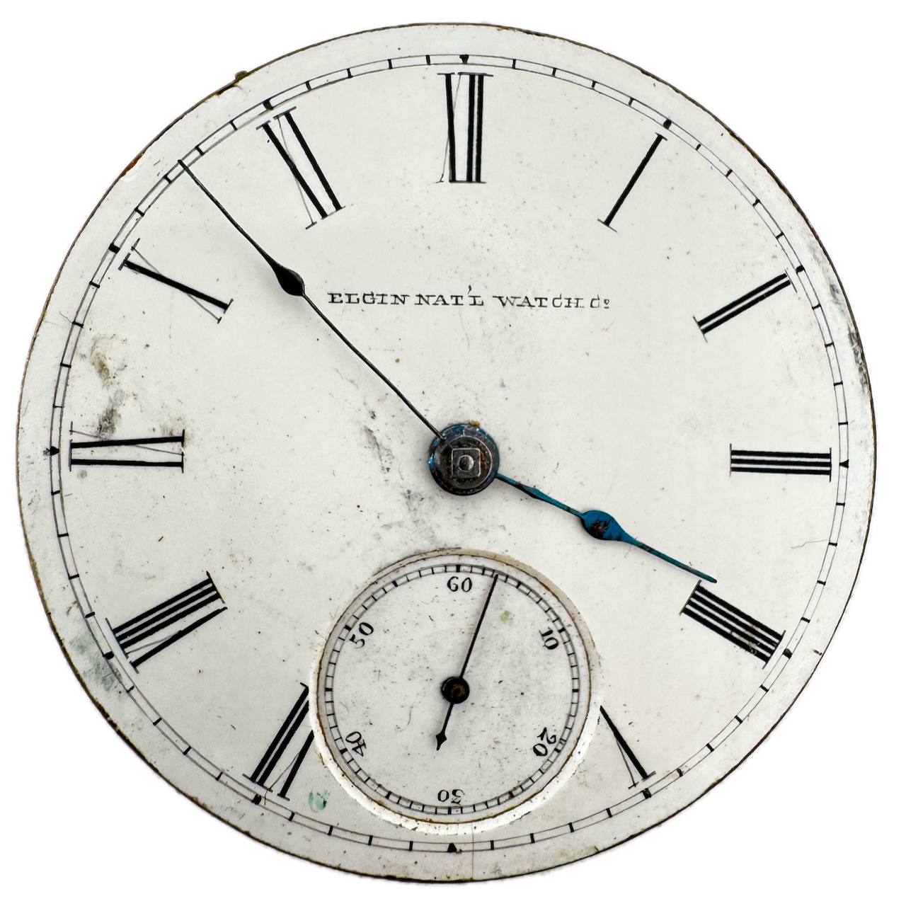 Antique 18s 1880 Elgin G.M. Wheeler 13j Key Wind Pocket Watch Movement 81 USA Product Description Item: Pocket Watch Movement Brand: Elgin Model: G.M. Wheeler Movement: Key Wind Production Year: 1880 Country: USA Jewels: 13j Gender: Men's Grade: 81 Size: 18s Product Measurements Diameter: 46mm Product Condition Overall Condition: Fair, overall condition for its age. Functions: Running, but may be in need of service. This means, it can run unreliably, start or stop and timekeeping is not guaranteed. Dial: The dial has light scratches on it. Hands: The hands have rust on them.