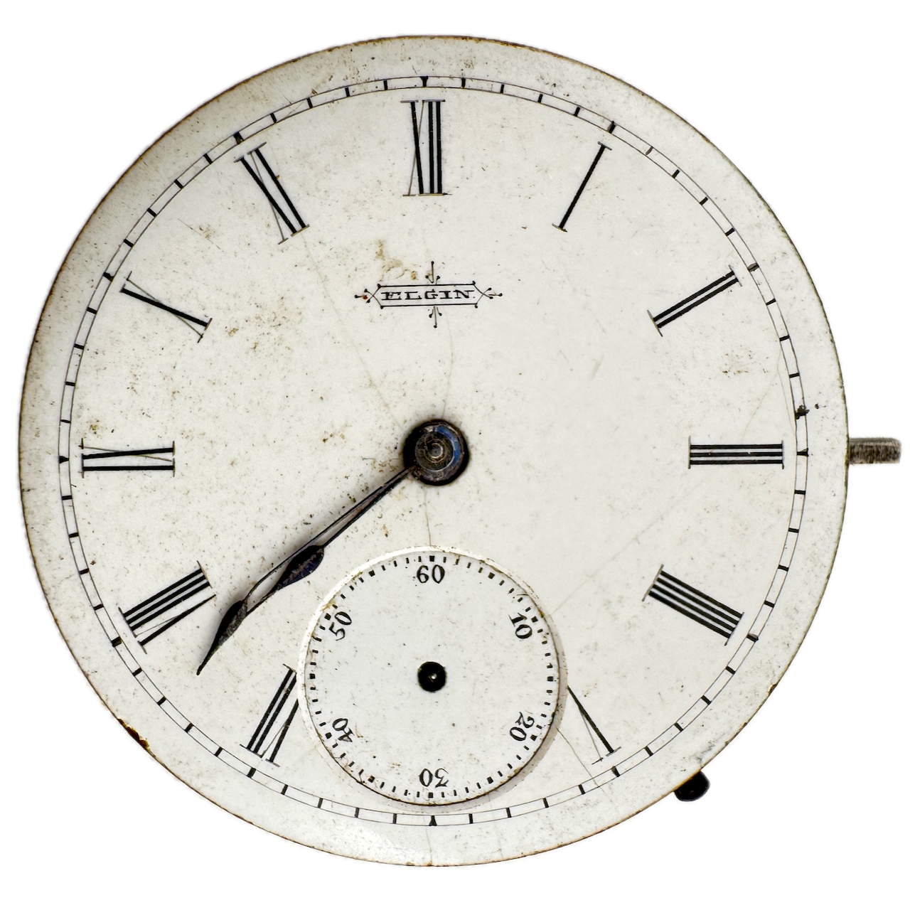 Antique 6s 1887 Elgin 7 Jewel Mechanical Hunter Pocket Watch Movement 95 USA Product Description Item: Pocket Watch Movement Brand: Elgin Movement: Mechanical Production Year: 1887 Country: USA Jewels: 7 Jewel Gender: Men's Grade: 95 Size: 6s Product Measurements Diameter: 34.5mm Product Condition Overall Condition: Fair, overall condition for its age. Functions: Not running, the Balance staff is broken. Dial: The dial has scratches and discoloration. Hands: It is missing the second hand. There is discoloration on the hands.