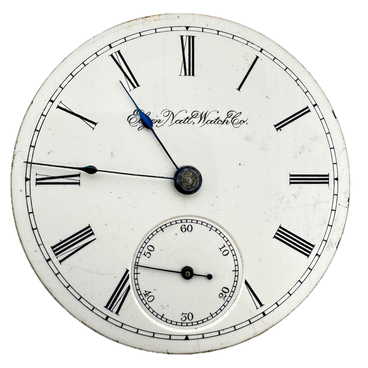 Antique 18s 1893 Elgin 17j Mechanical Hunter Pocket Watch Movement 125 USA Product Description Item: Pocket Watch Movement Brand: Elgin Movement: Mechanical Production Year: 1893 Country: USA Jewels: 17j Gender: Men's Grade: 125 Size: 18s Product Measurements Diameter: 46mm Product Condition Overall Condition: Fair, overall condition for its age. Functions: Running, but may be in need of service. This means, it can run unreliably, start or stop and timekeeping is not guaranteed. Dial: The dial has hairline crack(s) on it. Hands: There is discoloration on the hands.