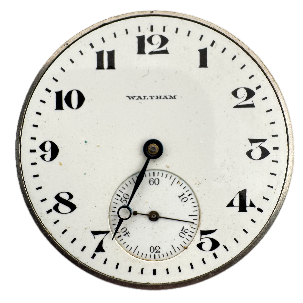Antique 12s 1898 Waltham 7 Jewel Mechanical Pocket Watch Movement 210 USA Product Description Item: Pocket Watch Movement Brand: Waltham Movement: Mechanical Production Year: 1898 Country: USA Jewels: 7 Jewel Gender: Men's Grade: 210 Size: 12s Product Measurements Diameter: 39.5mm Product Condition Overall Condition: Fair, overall condition for its age. Functions: Not running but the balance complete is in good condition. Dial: The dial is in good condition. Hands: It is missing the minute hand. There is discoloration on the hands.