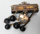Brooch We are selling this great piece of American or English Victorian mourning jewelry. This piece was tested as 18k gold and has black enamel inset on the chains. The main stone appears to be Jet or black onyx. The piece needs some restoration. Condition: Some condition issues. Some general wear and damages to the enamel. One dangling bead has a large loss, smaller rectangular stone has a chip on the corner. Dimensions: Height 2 1/2 Inches 6.4 cm Width 1 1/2 Inches 4.0 cm Depth 1/2 Inches 1.4 cm Some items we offer have age and wear, this wear due to age may include breaks, repairs, repainting, or restoration, we try to call this damage as well as possible but please refer to the photography for a full description. We try to identify and describe our items to the best of our ability however we are not experts and our estimates of age, period or attribution should be taken as speculation and not fact.Our descriptions are solely there to assist buyers finding the items and are not an accurate description of the item in all cases. Ultimately the pictures we take serve as our description. This fine antique is offered with a fair and reasonable fixed price, I trust my descriptions and photos detail this item to justify the asking price. If you do need information I have neglected to include, make an offer, or additional photos, please don't hesitate to ask, I will do my best to comply. If you desire to have your purchases insured, I am happy to do so if you request it. If you do not instruct me to insure for you,my responsibility will end when the USPS delivers to your mail service. Good Luck! Thank you for looking!