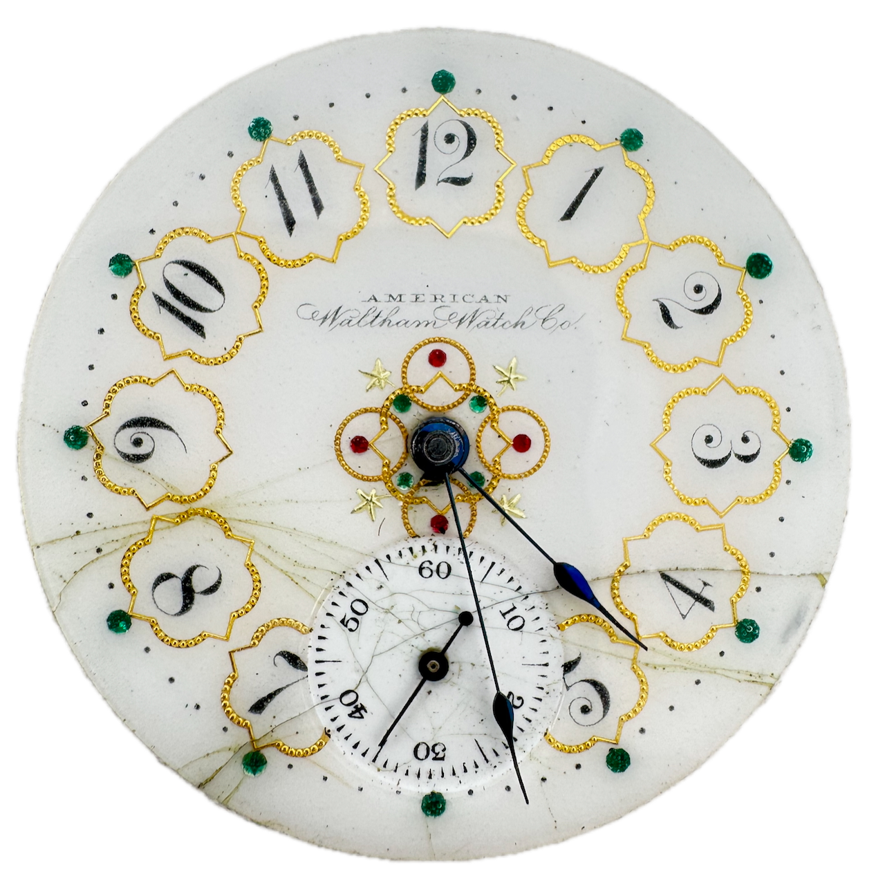 Antique 18s 1892 Waltham O'Hara Multicolor Hunter Pocket Watch Movement 22 USA Product Description Item: Pocket Watch Movement Brand: Waltham Model: Multicolor Production Year: 1892 Country: USA Gender: Men's Grade: 22 Size: 18s Product Measurements Diameter: 44mm Product Condition Overall Condition: Fair, overall condition for its age. Functions: Not running but the balance complete is in good condition. This item has not been fully inspected. Internal components may be damaged or missing. No guarantees are made regarding completeness or functionality of the movement. Dial: The dial has hairline crack(s) on it.