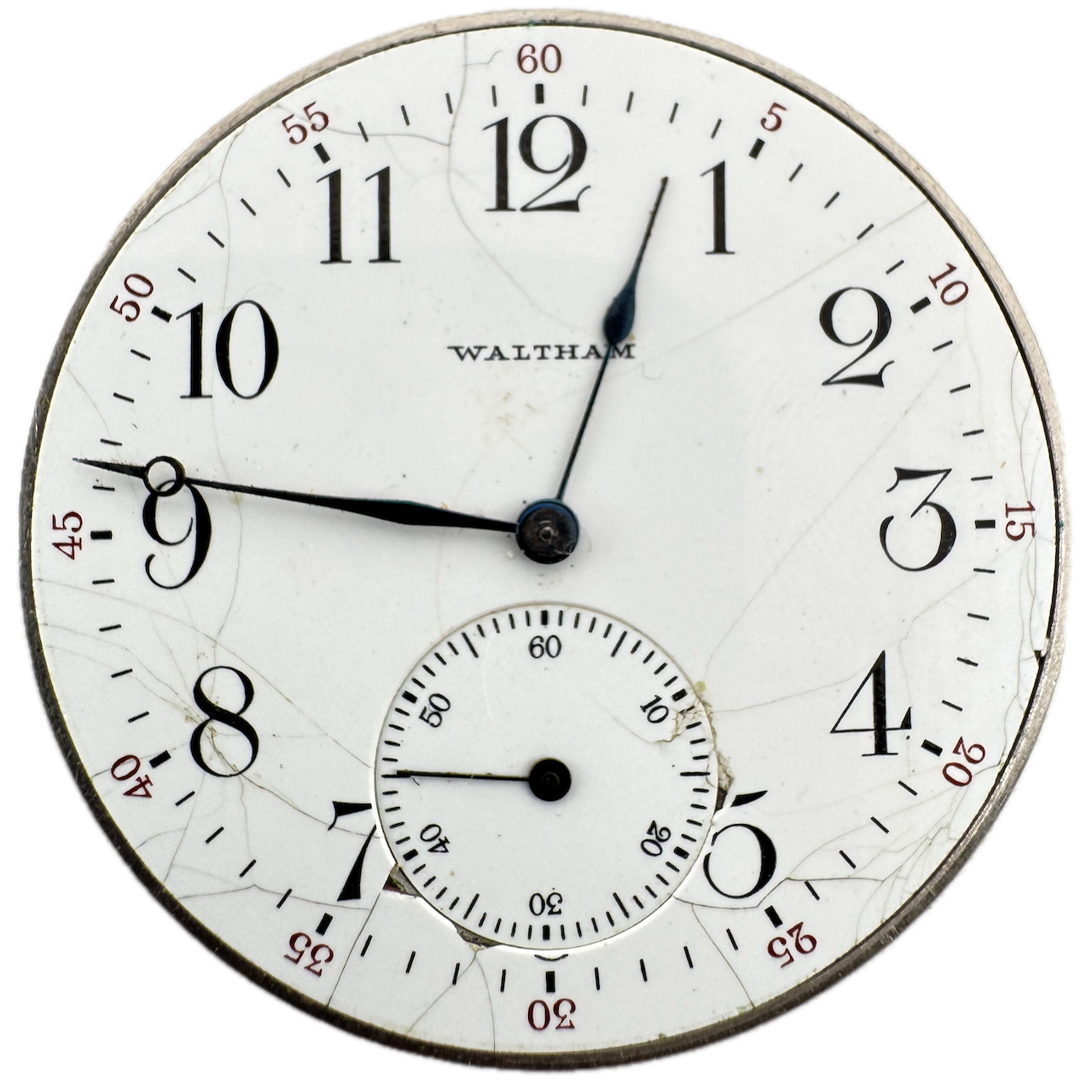 Antique 14s 1907 Waltham Colonial 17 Jewel Pocket Watch Movement 1425 USA Product Description Item: Pocket Watch Movement Brand: Waltham Model: Colonial Movement: Mechanical Production Year: 1907 Country: USA Jewels: 17 Jewel Gender: Men's Grade: 1425 Size: 14s Product Measurements Diameter: 41mm Product Condition Overall Condition: Fair, overall condition for its age. Functions: Not running but the balance complete is in good condition. Dial: The dial has hairline crack(s) on it.