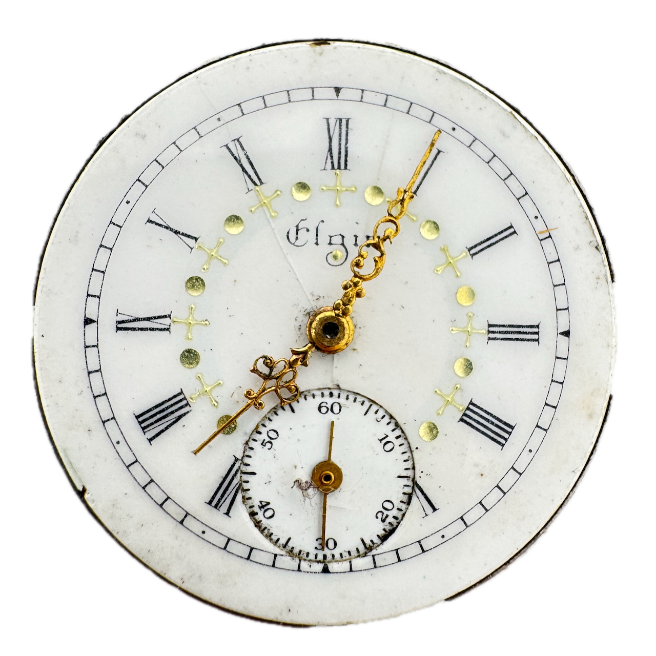 Antique 0s 1908 Elgin Multicolor 7j Mechanical Hunter Pocket Watch Movement 320 Product Description Item: Pocket Watch Movement Brand: Elgin Model: Multicolor Movement: Mechanical Production Year: 1908 Country: USA Jewels: 7j Gender: Men's Grade: 320 Size: 0s Product Measurements Diameter: 29mm Product Condition Overall Condition: Fair, overall condition for its age. Functions: Not running but the balance complete is in good condition. Dial: The dial has hairline crack(s) on it.
