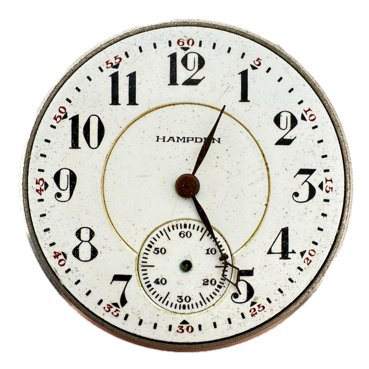Antique 12s 1918 Hampden 17 Jewel Mechanical Pocket Watch Movement 307 USA Product Description Item: Pocket Watch Movement Brand: Hampden Movement: Mechanical Production Year: 1918 Country: USA Jewels: 17 Jewel Gender: Men's Grade: 307 Size: 12s Product Measurements Diameter: 40mm Product Condition Overall Condition: Fair, overall condition for its age. Functions: Not running but the balance complete is in good condition. Dial: The dial has light scratches on it. Hands: It is missing the second hand. The hands have rust on them.