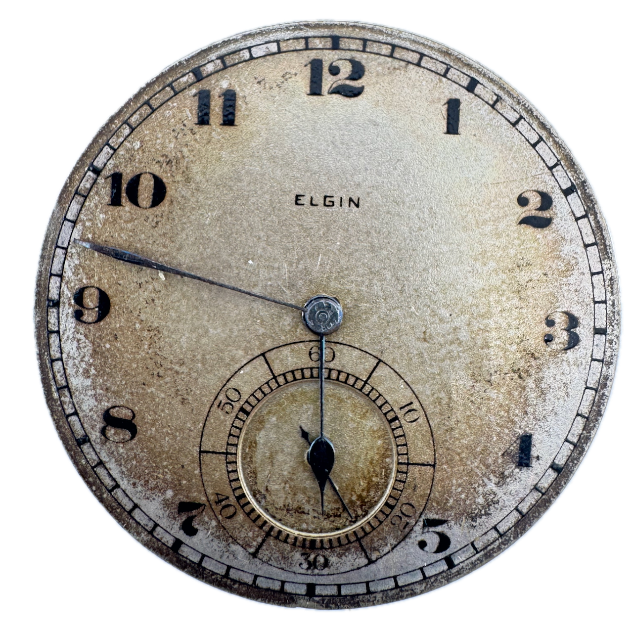 Antique 12 Size 1919 Elgin 17 Jewel Mechanical Pocket Watch Movement 384 USA Product Description Item: Pocket Watch Movement Brand: Elgin Movement: Mechanical Production Year: 1919 Country: USA Jewels: 17 Jewel Gender: Men's Grade: 384 Size: 12 Size Product Measurements Diameter: 39.5mm Product Condition Overall Condition: Fair, overall condition for its age. Functions: Not running, the Balance staff is broken. Dial: The dial has scratches and discoloration. Hands: There is discoloration on the hands.
