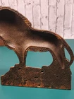 The product is a pair of antique 1926 cast iron lion bookends manufactured in the United States in the early 20th century. These Art Deco styled bookends feature a rust color finish and are adorned with a lion pattern, making them a unique and decorative collectible item for adults. The Nuart brand adds a touch of authenticity to this original piece, making it a perfect gift for any occasion.