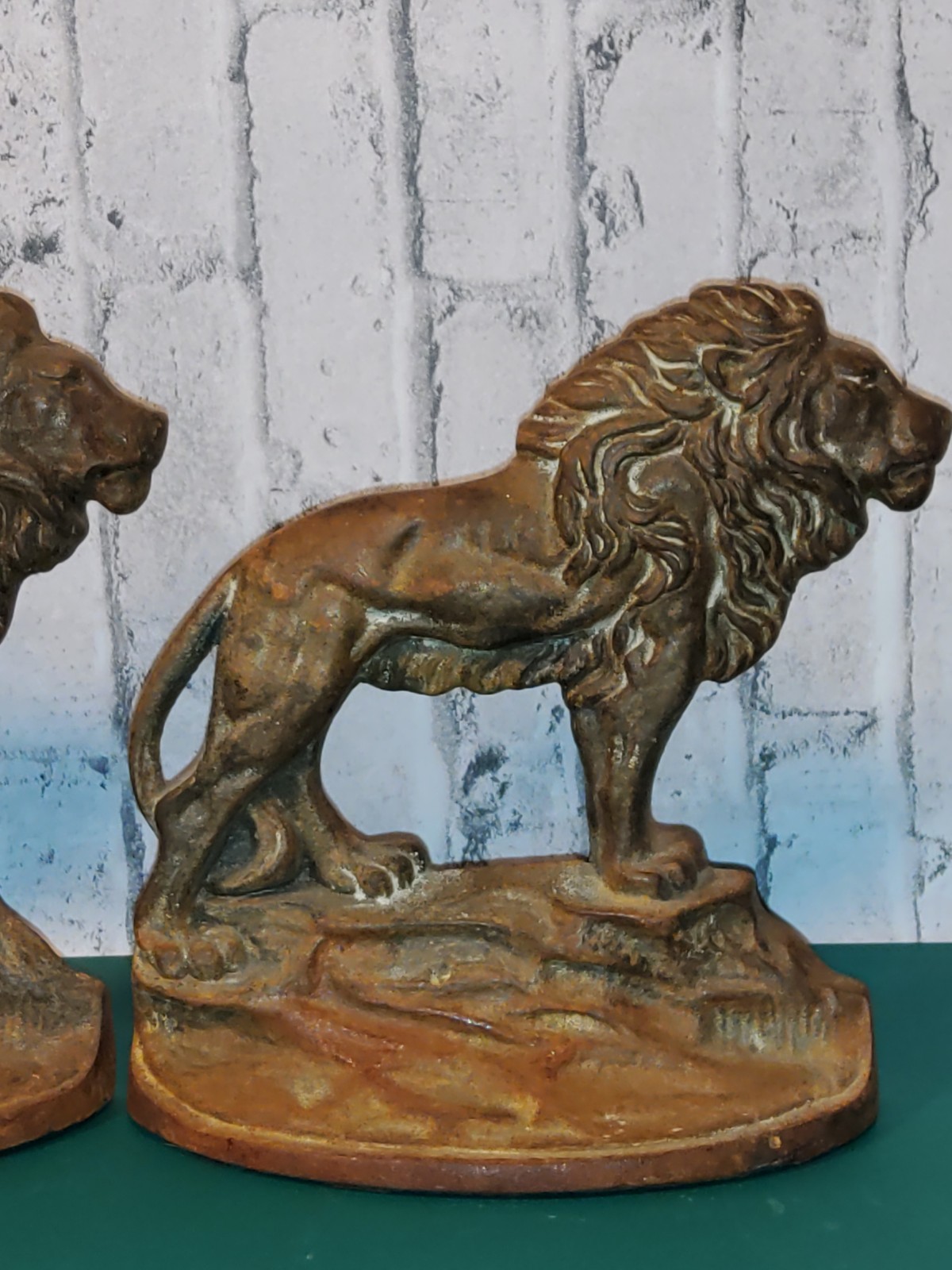 Vintage Pair of Figural Lion Bookends 1920's Metal Lions, Bron-Met
