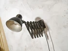Rare Scissors lamp by SIEMENS. Wall mounted Harmonica lamp. It's got great weathered Patina. This light is an original vintage item, meaning there are signs of wear making it highly unique. We've got a 1930s Scissor system by Siemens and mounted a gorgeous lampshade from the same time period. Unique combination of Antiques. This Unique Workshop light will defenitely boost your work space and interior! It's completely adjustable due it's Scissor system. The light holds an E27 fitting with a Lightbulb, which is included. You are able to adjust the vintage Wall lamp and shade into different angles. Rewired and added a new lightswitch on the electrical cord. Fully checked and ready for your home. SIEMENS LAMP: Make: SIEMENS Scissor system, Made in Germany. Model: Scissor Lamp, extendable scissor mechanism Mount: Wall mounted Color: Black Patina Scissor system, Black lampshade Date: Circa 1930s Dimensions: Diameter lampshade: 17 CM / 6,7 INCHES Extendable up to: 120 CM / 47,2 INCHES PLEASE NOTE: ANY CUSTOM DUTY WILL BE PAID BY THE BUYER IN THEIR COUNTRY. Pick up of this item is available. Worldwide shipping. FAQ | Frequently Asked Questions: 1. **Using EU Lightbulbs with 110 Volts:** - EU lightbulbs (220V - 250V) can be used with 110V. - They will be less bright and have a longer lifespan. - The light may become slightly more yellowish. 2. **Plugging European Devices into Non-EU Electricity Networks:** - All our Vintage Lighting come with a Standard EU Electrical Plug (Type F). - Use a simple adapter (for example: EU Type F to US) to fit your socket, ensuring it is grounded. - Adapters are available online and in stores like Home Depot. 3. **Using Non-EU Lightbulbs (E27 or E14):** - Europe uses E27 Edison and E14 (smaller size) lightbulbs and sockets. - E26 lightbulbs can be used in E27 sockets. - E14 lightbulbs are available online and in many stores worldwide. Do you have any other questions? Don’t hesitate to send us a message!