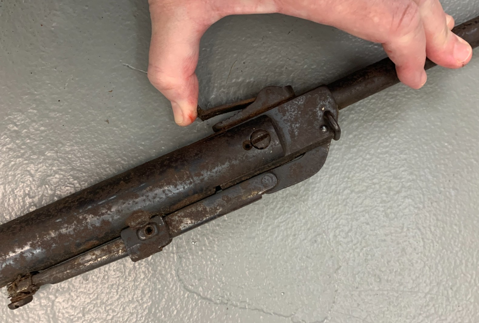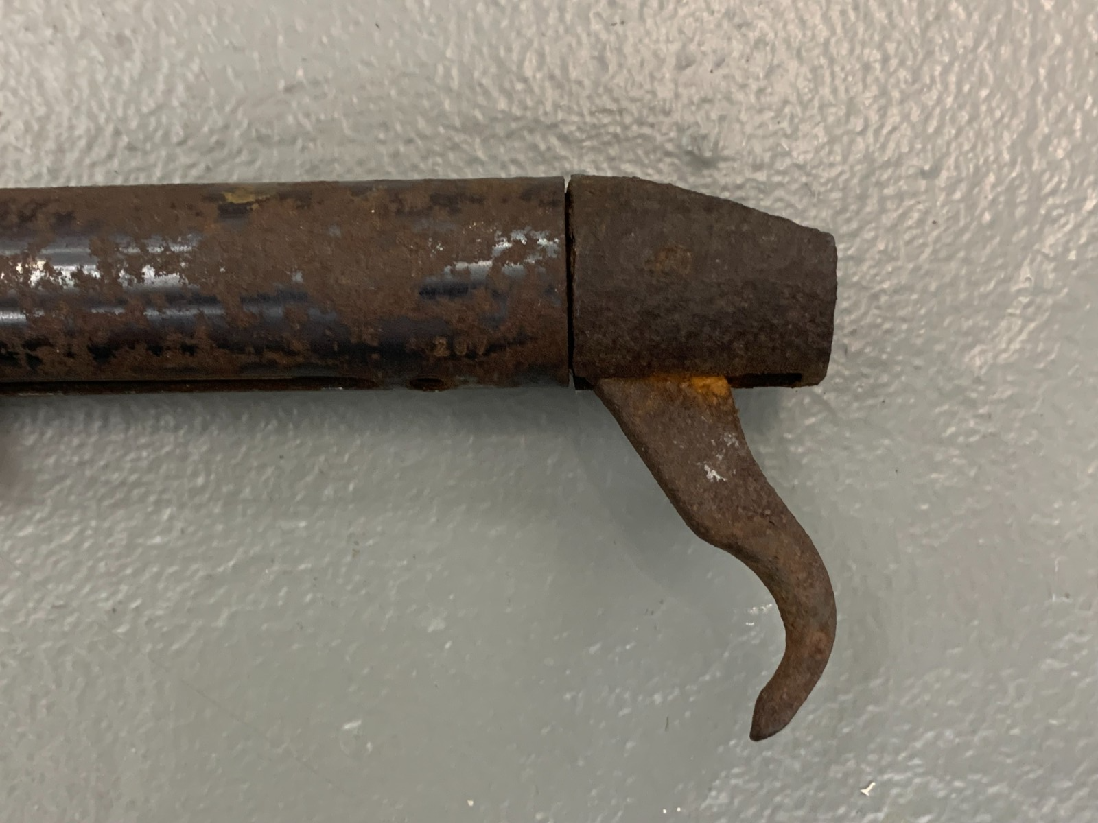 *Rare Antique Find* Found in an attic; unsure of age, provenance, etc. Highly rusted and corroded; there is a number 297 near end - see second photo. Heavy steel. For collector or parts. Measures 26" long, weighs 3 1/2 pounds. Fast shipping, quality packed, snoke-free household, trackable. Thanks for looking :)