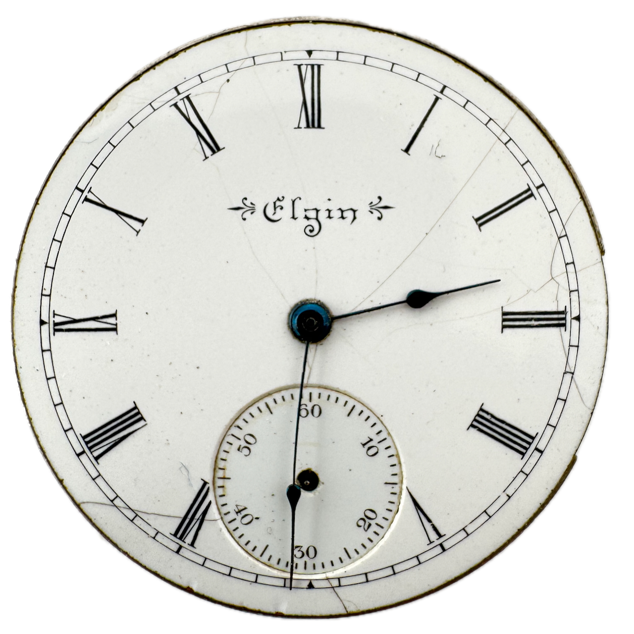 Antique 6s 1902 Elgin 7 Jewel Mechanical Hunter Pocket Watch Movement 206 USA Product Description Item: Pocket Watch Movement Brand: Elgin Movement: Mechanical Production Year: 1902 Country: USA Jewels: 7 Jewel Gender: Men's Grade: 206 Size: 6s Product Measurements Diameter: 34.5mm Product Condition Overall Condition: Fair, overall condition for its age. Functions: Running, but may be in need of service. This means, it can run unreliably, start or stop and timekeeping is not guaranteed. Dial: The dial has hairline crack(s) on it. Hands: It is missing the second hand.