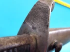 Antique Argentine Model 1898 Artillery Short Sword Saber measuring 32" overall with a blade length of 26.12". Very good condition showing scattered age patina, handling wear, scratches. Manufactured by Weyersburg Kirschbaum & Co. Solingen and marked on the ricasso area of the blade. "2" stamped on the top of guard, bottom of guard stamped, "RA" and "370". Remnants of Argentine Crest on the underside of guard, mostly ground off. These were ground off by the Argentine Govt, prior to being exported. The drag on the scabbard drag is stamped "RA 2936", left side of handle is stamped, "1768". Top and bottom of blade spine also has some lettering stamps. The handle and the scabbard shows a brown and silver age patina on it, handle is tight with no looseness. A great looking German made piece. See photos for further details.
