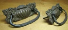 Antique Decorative Arts Hardware Pair Drawer Pulls High Relief Thin Brass Ornate Design please view all pictures for more information sold as shown no additional parts included each exhibits wear with age and use surface wear patina finish loss noted mount backing measures approximately 1 7/8" tall 4 3/4" wide studs 3" on center swing arm extends out approx 2" check our store for more old hardware available for private inspection by appointment please view all pictures for more information and to judge condition for yourself. wear and tear with age and use. please ask all questions before end of auction. available for private inspection. please feel free to contact us with any pertinent questions pertaining to the item. please refrain from bidding if you do not agree with our terms. follow us and add us to your favorite sellers, we are always adding new items in our store. thank you for looking -ch.gcgrysh6/121119- **AGED2PERFECTIONSTORE**