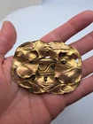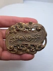 Antique Bronze Victorian Brooch Lapel Pin Intricate Art Nouveau C Clasp Swirl