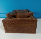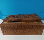 Antique CARVED WOOD DRAGON BOX Detailed