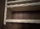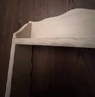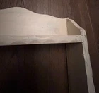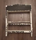 Offered is a vintage wooden 3-tier wall shelf. Painted white in a crude fashion; the middle shelf is mostly black. Excellent carved 'wavy' detail on front shelves of unit. Two hanging sawtooth on back. This find can be left 'as is' for a shabby-chic Country French look, or repainted to your specifications. Ideal for holding spices, incense, toiletries, or any collection worth displaying. Measures 16 1/2" tall x 13" wide x 3" deep. Weighs just under 2 pounds. Fast shipping, quality packed, smoke-free household, trackable. Thanks for looking :)