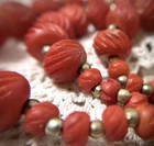 Antique Bib Necklace Dyed Celluloid carved Flower Accent Red Victorian 20”