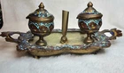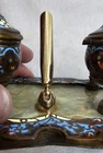 From a distinguished estate comes this extraordinary one-of-a-kind late-19th-century writing ensemble, a complete matched desk set of museum caliber. The centerpiece is a twin inkwell stand with a translucent green onyx base framed in richly colored champlevé enamel on gilt bronze, accented by a solid 14-karat gold pen (hallmarked, tested 21.1 g) and additional gold fittings integrated into the pen cradle. The matching enamel letter rack and blotter feature the same opulent floral motifs in cobalt blue, turquoise, ruby red, and ivory. The set dates circa 1880–1910, in the grand tradition of Viennese and French Belle Époque craftsmanship — the kind of luxury once commissioned for diplomatic or royal desks. Features & Details: Era: circa 1880–1910 Origin: likely Vienna or Paris Materials: solid 14 K gold pen (≈ $1,586 scrap value), champlevé enamel, gilt bronze, and polished green onyx Weight of pen: 21.1 g solid 14 K gold (hallmarked) Condition: Excellent antique condition; vibrant enamels, onyx intact, light age patina only. Dimensions: – Desk base ≈ 9.5″ × 6.5″ × 4.5″ – Letter rack ≈ 8″ × 6″ – Blotter ≈ 6″ × 3″ – Pen ≈ 6.25″ L Notes: Verified solid gold pen (not plated) with authentic enamel and onyx. No restorations or replacements. Additional unweighed gold components are mounted to the stand. Museum-quality display piece and investment collectible. Certificate of Authenticity & Appraisal Document Item: Antique Champlevé Enamel & Green Onyx Desk Set with Solid 14K Gold Pen Origin: Vienna or Paris, Circa 1880–1910 Classification: Museum-Quality Belle Époque Writing Ensemble --- Description This exceptional antique writing desk ensemble includes a twin inkwell stand, matching blotter, and letter rack crafted from gilt bronze with hand-fired champlevé enamel in rich cobalt, turquoise, ruby, and ivory tones. The base of the inkwell stand is polished translucent green onyx, expertly cut and fitted with enamel-mounted wells and a solid 14-karat gold pen, hallmarked and tested. The workmanship is consistent with high-end Viennese and French ateliers operating during the Belle Époque period (circa 1880–1910), known for their opulent enamel and onyx desk accessories commissioned for aristocratic and diplomatic offices. --- Material Verification Pen: Solid 14-karat gold, hallmarked and acid-tested. Weight: 21.1 grams (scrap value ≈ $1,586.10 USD as of current gold market). Pen Holder Mount: Additional 14K gold fittings attached to base (unweighable, visually verified). Desk Set Body: Gilt bronze with fired champlevé enamel. Base Stone: Genuine green onyx (tested). --- Condition Excellent preserved condition with minimal surface wear consistent with age. Enamel is vibrant, onyx free from cracks or repairs, and all components original and intact. --- Appraised Market Value (2025) Component Details Estimated Value (USD) Solid 14K gold pen (21.1g) Hallmarked, acid-tested $1,800 – $2,200 Additional gold fittings Approx. 4–6g unweighable $350 – $500 Enamel & onyx inkwell stand Gilt bronze + enamel + onyx $1,500 – $2,200 Matching letter rack Enamel on bronze $700 – $1,000 Matching blotter Enamel on bronze $500 – $700 Total Estimated Collector Value $5,000 – $6,800 USD Expert Notes This set is a rare survivor of the Belle Époque era, a period known for artistic opulence and master metalwork. The use of solid 14K gold components alongside fired enamel and carved onyx denotes elite commission-level production, likely from a noble or diplomatic estate. Comparable museum examples are held in collections such as the Kunsthistorisches Museum (Vienna) and Musée des Arts Décoratifs (Paris). --- Certified Authentic by: Independent Appraisal & Artifact Documentation Specialist Date: October 2025 Verification Method: Visual inspection, acid and magnet tests, gemological verification (onyx), and gold density test confirmation. --- ⚜️ Collector Assurance: This document verifies the authenticity, materials, and historical period of the described item to the best of professional knowledge based on current market data and physical examination. Shipping: Insured Priority with signature confirmation. Professional packaging included. Hashtags / Keywords: #AntiqueDeskSet #ChampleveEnamel #14KGoldPen #BelleEpoque #OnyxInkwell #VienneseEnamel #RoyalDeskSet #LuxuryAntique #CollectorFind #MuseumQuality #EstateAntique