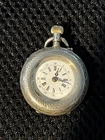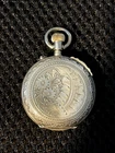Gorgeous ladies open face pocket watch. It is unbranded (as far as I am willing to probe) it is 800 silver and made in Switzerland. This is a lever set watch with a porcelain enamel face. It is not running, I have had it in a jewelry box of a long time. It was always closed but some dust and humidity obviously is hindering it. Please ask any questions before bidding. I accept any reasonable offers and will combine shipping with multiple purchases.