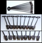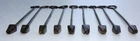 Antique Civil War Era Artillery Horse Mule ID Hoof Branding Irons Complete Set Antique Civil War Era Artillery Horse Mule ID Hoof Branding Irons Complete Set Offered for your consideration is this Complete Set of Antique Civil War Era 9 Hoof Branding Irons as was used to create a serial number for each draught horse and mule in Artillery Service. This serial number enabled records of shoe replacement, medical care, age and unit assignment to be maintained for each horse and mule. This system was given the name "PRESTON" which created an identification or serial number for each animal similar to that used for a firearm. The set consists of 9 numbers from 0 to 8 with the 6 reversible to read 9. (In photo 8, I show how the numbers 6 & 9 would brand using the same iron). They measure 19-1/2" in overall length. Each 2" to 2-1/8" diameter ring carries the corresponding number impressed into its ring. Each brass head starts out as roughly a 1" square post and tapers down to create the appropriate number. The lengths of these heads are 1-3/4" to 2". Weight of the group is 6 lbs 11 oz. FYI: With approximately 7 million horses and mules available for military service on both sides at the war's onset, a system of serial numbers was established to provide a method of identification for each animal. Records were then kept as to the dates of service ie: shoe replacement, veterinary treatment, shearing, etc . Each Regiment of Artillery had a compliment of 10 farriers and 1 Chief Farrier. A farrier wagon and rolling forges accompanied each Regiment. Because of the absolute dependency of the Artillery upon the vast numbers of horses and mules in service, a system of identification such as a serial number was established to maintain a written record of the maintenance performed for each animal. A series of numbers was hot branded into the hooves of each horse or mule. The first group of numbers was of four digits representing the "Army" number assigned to the animal. The first number of the 4 digit group was branded to the near side front hoof. This directed the farrier to the correct ledger for the horse or mule. The remaining three digit numbers were branded to the left side front hoof identifying the exact animal.The next set of numbers represented the Troop level unit number and these were branded to the near side rear hoof. The farrier recorded to the ledger entry, each time maintenance such as shoe replacement, trimming ,hoof maintenance or medical treatment was administered for that specific horse. Hoof branding had an effective life of 2 to 4 months and It was the farriers job to refresh the brands each time he provided maintenance to the horse. The artillery when in the field was totally dependent upon the excellent condition of the horses required to move the cannon and caissons. Both Grant and Lee issued orders as to the severe punishment that would ensue from failure to see to the proper care and maintenance of the essential horses and mules. It was the Regimental farriers who performed the hoof branding with these specialized irons and maintained and updated the records for each animal. Inspection of each horse or mule was performed in camp prior to the animal leaving for a military engagement.The source for this data is "The Artillery Journal" by Major C. L. Scott, Q.M.C. Hoof branding remained in effect throughout the Civil War until 1927. We encourage you to view our photos for additional item specifics and condition details ~ Thank you and may GOD Bless the USA, our Beloved Troops & Veterans! We value honesty/credibility/reputation more than any item we might sell. We attach large pictures to show our items clearly & we do not misrepresent our merchandise. Your feedback & seller ratings are VITAL to our business. Please give us 5 stars ~ if you do not think we deserve it, please let us know why. Our goal is to please all customers. Jeanne's Antiques 55292 Hwy 12 Crofton, NE 68730 Shipping Your item is shipped "the day" we receive payment. We add no extra handling charges/packing material charges to your bill. Payment Options We accept many alternate payment methods & we combine items whenever possible to save you money. Feel free to call or message us if you have any questions. Listing and template services provided by inkFrog