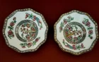 Antique Coalport Indian Tree Pattern Saucers Floral Tree Motifs Vibrant Colors, 5" across with a gold scalloped edge. Old mark of A.D. 1750 when the renown English porcelain manufacturer Coalport was established.