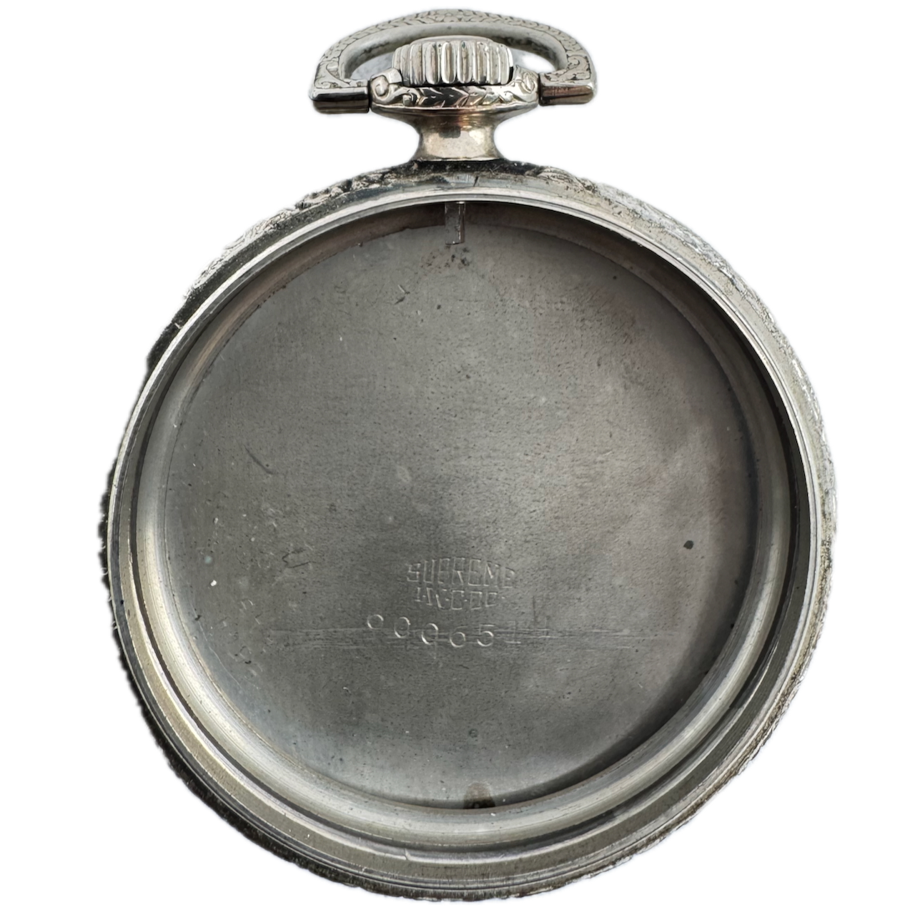 Antique 42mm GD Open Face Pocket Watch Case in Sterling Silver with Scale & Shield Design