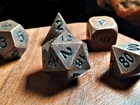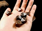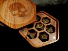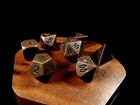 IMPORTANT: The dice come without the wooden box. If you are interested in the box also please see the links below or contact us. This is a set of Metal dice set coming in three colors: Antique Gold, Antique Copper and Black with Antique Gold edges. The set contains 7 dice and you can also purchase a wooden hexagonal dice vault to store them. Made of a nickel-free alloy, it's allergy free and durable. For extra longevity please keep it away from harsh chemicals. Description: • Materials: Zinc Alloy and Wood • Dimension: Dice Set Weight: 150 g / Wood Box Weight: 100g, Size 3.75 x 4.25 inches (9.5 x 10.8 cm) If you are interested in boxes: https://www.ebay.co.uk/itm/403869623229 DELIVERY: For UK: • Fast tracked delivery - 1-2 working days + 1 day for processing • Full refund it does not arrive after 10 business days. Outside of UK: • Free Tracked delivery - 3-7 working days + 1 day for processing • Full refund it does not arrive after 25 business days.