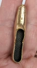 Antique Edwardian Victorian Era Shoe Slipper Pin Brooch. I believe this was used as a Nosegay to hold a tiny bouquet of flowers. Very unique and unusual Etched decorated Rolled Gold long slipper pin that is well made and very detailed. This shoe or long slipper measures 1 3/4 inches in length. It has a long Victorian hinge pin and simple C clasp. It is very finely crafted and the gold tests as 10k. I believe this is heavy rolled gold. 4520
