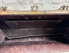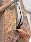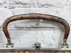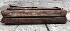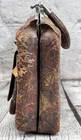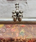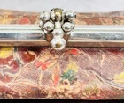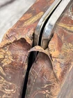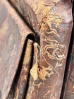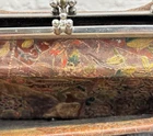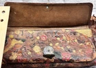 Antique Embossed Leather Handbag Fish Motif Frame Purse c1890s-1910s As Is Beautiful antique embossed leather handbag dating to the late Victorian to early Edwardian era, featuring an eye catching fish and floral motif with raised detailing and gold accents. This structured piece has a classic metal frame with a ball clasp closure and a rigid top handle, making it a wonderful display piece or restoration project. •Era: Circa 1890s to 1910s •Material: Embossed leather with painted and gilt accents •Design: Chinoiserie style fish and floral motif •Closure: Metal kiss lock frame with ball clasp •Measurements: Approx. 10.5 inches wide, 5.5 inches tall, 3.5 inches deep Condition is as found and being sold as is. There is significant wear throughout including cracking, surface loss, and deterioration to the leather, especially along the sides and edges. The bag shows age related wear consistent with its era and long term storage. There is also a strong and noticeable mothball odor present. Please review all photos carefully as they are part of the description and show the exact condition. This is a great candidate for display or restoration. No returns. Ships securely.
