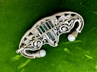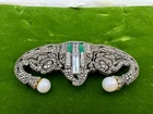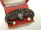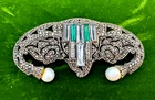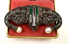 STUNNING and VERY RARE, ANTIQUE, SIGNED "MADE IN FRANCE", EARLY ART DECO FRENCH VICTORIAN BROOCH with amazing faux PEARLS and GREEN BAGUETTES and marcasites -- GREAT FOR ANY OCCASION - WEAR IT ON YOUR LAPEL, COAT, BLAZER, JACKET, DRESS, CARDIGAN, SWEATER, SHIRT, HAT, PURSE, OR SCARF! My pictures are enlarged to show quality, condition and details. It is about 2.7" in length. I encourage you to review every photo provided, since my pictures are an essential part of the description. Please ask your questions prior to bidding / purchasing. Returns are not accepted. I'll gift wrap for you and will package it very well, however, m y display boxes are not for sale. Please Note: - The Items, which I List, are Antique, Vintage or Old, (they are NOT Brand New Antiques). They have been used and show signs of use commensurate with age. See pictures as they form part of the description and to satisfy yourself to the condition. Please buy with confidence from me and please read the feedback I’m getting (if you have time)! I gladly combine the shipping! Your paid jewelry or vintage accessory will be shipped within the 24 hours after the received payment! Thank you very much for browsing my collection. Please find me on-line as "Alex Karenin Estate Jewelry"! Alex Karenin Estate Jewelry Store