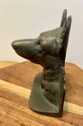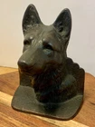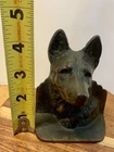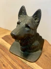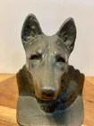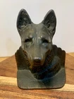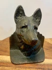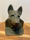 Rare Estate Sale Find - This antique bookend features a beautiful German Shepherd dog head bust in solid brown color. Crafted from high-quality cast iron material, this traditional style bookend stands 4.5 inches tall and measures 3.25 inches in length and 2.5 inches in width. Perfect for all occasions and any dog lover, this original piece from the 1920-1949 time period is a must-have for your collection. The asymmetrical shape and finish add a unique touch to the overall design. In very good condition as shown photos (#2)