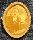 You are looking at an antique German Victorian Brooch. The brooch has a celluloid photo of a man in a suit and young child in a sailor's type outfit. The photo is sepia colored and has crackling from someone wearing it all these years. The simple style brooch is copper colored and has wear (oxidation). The brooch is just under 1.25" x 1". The pin on the back looks like it was replaced and has a c-clasp that functions as it should. Great for the collector of antique Victorian brooches. This will ship so we both have tracking. Thanks for looking!