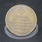 HIGH QUALITY KNIGHT CHALLENGE COIN: This coins is meant to serve as reminder that our strength comes from the Lord, and that he is stronger than any trial or tribulation that lies ahead of us. No challenge is too great for those that rely on the Almighty! CHRISTIAN TASK AHEAD COIN WITH BIBLE VERSE, PACK OF 10: Front: a kneeling knight with sword, with text "Greater is he who is in you than he who is in the world. 1 John 4:4". Back: a shield with cross, with text "I can do all things through Christ who gives me strength. Philippians 4:13"| GOLD PLATED COLLECTIBLE KEEPSAKE: These beautiful challenge coins are a perfect tool to serve as a subtle reminder of faith. Great to keep in a pocket, purse, or backpack to carry with you wherever you go, or put it on display on any table or desktop. HIGH-DETAIL PASS ALONG TOKEN: Carefully and exquisitely designed, this Bible verse challenge coin makes the perfect gift or token of encouragement to pass out to friends or family. Make someone's day with a simple, kind gesture and a small gift. Also a great tool for bulk teaching aids and object lessons at church, school, small groups, or youth groups. PERSONAL POCKET TOKEN OR ENCOURAGING GIFT: These Christian challenge coins come in gift-ready packaging. Makes for the perfect present as a token of gratitude, appreciation, or encouragement. Remind someone that they are not alone, and that there is a God who loves them.