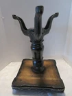 · Description: 18-24-18-18 Antique 19th Century Swiveling Piano/Organ Stool 3 Cast Iron claw foot legs with a wooden post. Restored-repurposed Seat does not have the original upholstery- probably the original is under the new fabric, the fabric appears to be vintage vinyl like upholstery. Repainted Wood post. The wooden post have three small holes, one leg has a factory defect –it has a smooth edge. View pictures # 1, 2, 3 Embossed H.D. BENTLEY It measures: 19"H with Seat Down 23.5"H Seat Up. 13.75"W across Feet. 12.25" X 12.25" Seat Weighs about 12 Lbs. Great Antique condition- appropriate patina for its age and use- some restoration - upholstery seat, and iron color. Please zoom and view all pictures for more details as they are part of the description I DO MY BEST TO DESCRIBE EVERY LISTING BUT I AM NOT AN EXPERT AND ITEMS ARE SOLD “AS IS”. My idea of great/good may be different than yours, so EXAMINE PHOTOS CAREFULLY since they are binding and a supplement to the word description in case I should miss something. If I fail to mention something, it does not qualify as “item not as described” if it shows in my pictures. EACH PHOTO IS WORTH A THOUSAND WORDS AND THEY ARE OF THE EXACT ITEM YOU WILL RECEIVE. RETURN POLICY: Returns are acceptable ONLY if the item is defective, or grossly misrepresented. THIS MEANS I DO NOT ACCEPT RETURNS for FIT, SIZING, COLOR ISSUES, OR BUYER'S REMORSE. Please zoom and view ALL pictures for more details as they are part of the description. Email me with any questions you may have. Please note: Buyer pays ALL return shipping and fees. · FEEDBACK I do not leave feedback until the end of a transaction. The transaction is considered over once I receive feedback from you confirming that you have received it and expressed satisfaction with it. If you are unsatisfied with your purchase, please contact me before leaving a neutral or negative feedback- so I can fix the issues. ·