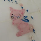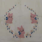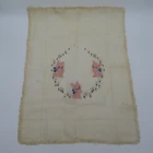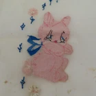 Antique hand embroidered linen piece Features bunny rabbits and flowers 28.5" x 37.5" **measurements are approximate, taken with item laying flat Condition: used, surface wear/holes and stains- see photos, smoke free home Please review all photos closely as these will be the best description of the item. Thank you for shopping!