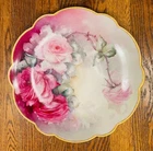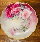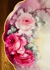 Antique Hand Painted Limoges Tray Platter with Roses. Produced in Limoges (generic underglaze mark) and hand painted most likely by an amateur artist in the USA (signed in the back Sullivan). Beautiful roses and golden border. Measures 12.5" in diameter. Excellent condition with no cracks or repairs, no paint loss. Will be carefully packaged for shipping.