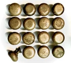 Lot of 14 Antique Drawer or Cabinet Knobs in Heavy Solid Brass with a rich Patina - Lot of 14 - Most with their original screw/bolt mounting hardware - Very heavy - Nice Patina - Solid brass - Approx: 1.25"