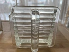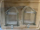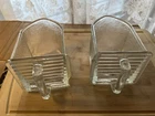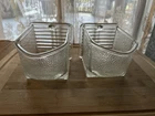 Here we have two glass scoops from the old Hoosier cabinets , americas first version of kitchen cabinets, before that we mostly had big work tables with bottom storage and shelves along the wall. These two have large corner chips on the face side, one at the bottom right side , the other on the upper left. These might be made better by emory cloth grinding, buffing. Currently they are sharp so be careful. The upper edge surfaces are mildly rough , which is how they were made , the bottom edges are very smooth. See photos. This antique glass scoop set is a true gem for collectors. The Heye Schauenstein Large Scoops are a unique pieces that is both stylish and functional. The glass material adds a touch of elegance and the antique style is sure to impress. Measuring approx. 4.25 inches in height, 7.25 inches in length, and 4.5 inches in width, this set is the perfect addition to any collection.